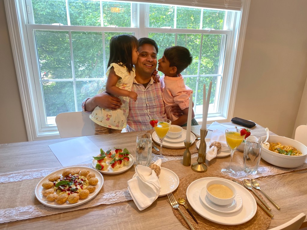 It was a beautiful morning this past Fathers Day. I was able to fix 6 course elevated Indian brunch. Ava made a nice card for Kunal😎