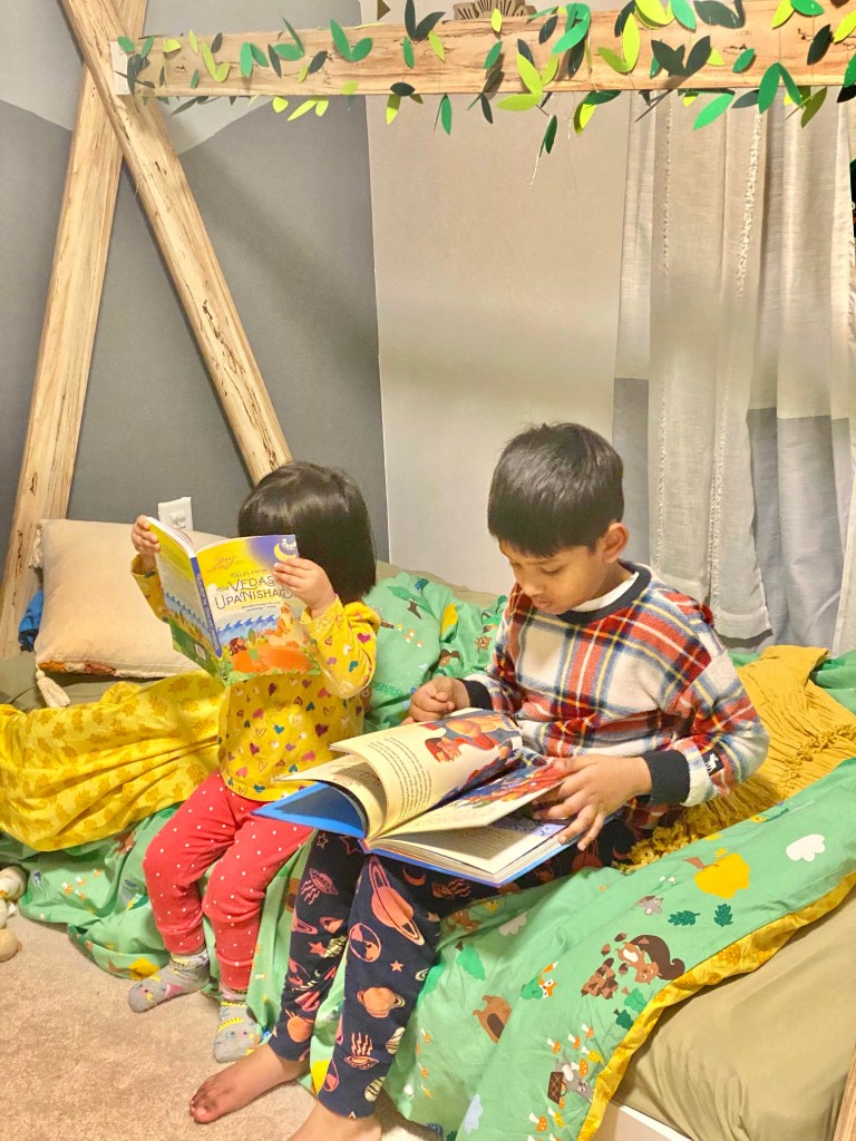 Avyaan is starting to become an avid reader. His reading speed is almost as good as mine. Baby Aarohi picks up any book and creates her own story based on the pictures.Thats how I know if the book is well illustrated or not 😂